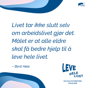 For oss i Høyre er det viktig at vi legger til rette for at alle skal kunne bo hjemme så lenge de ønsker og kunne være selvhjulpne i hverdagen. Et godt tilbud av dagaktiviteter og muligheter for avlastning er viktig for pårørende, og det gir livsglede og innholdsrike dager til dem som benytter seg av slike tilbud. Vi ønsker også å tilrettelegge for bomiljø for eldre med tilpasset livsløpsstandard som del av nye utbyggingsområder.